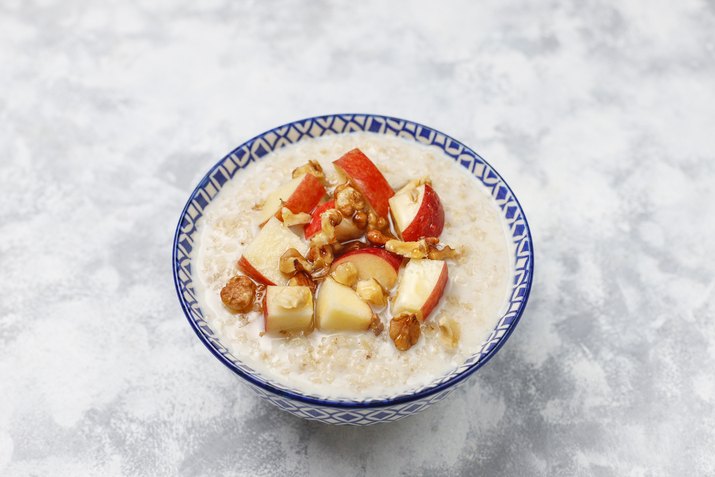 Сладкая овсяная каша с яблоками и корицей
